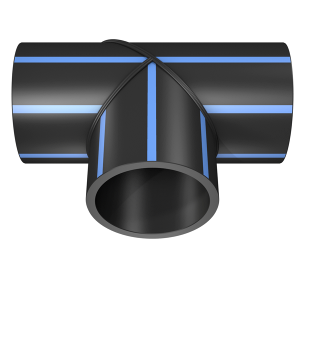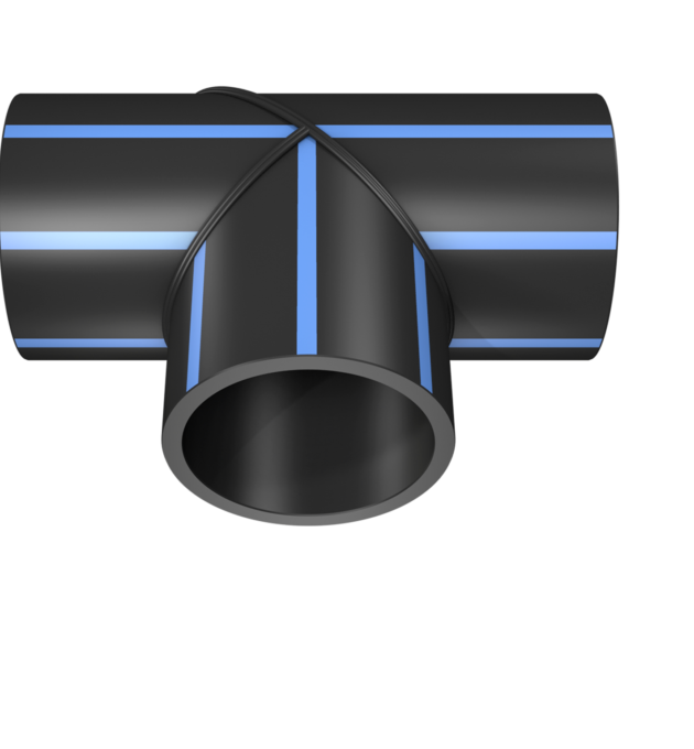 Tee a 90° formata a settori in PE100 realizzato tramite saldatura testa-testa di segmenti di tubo. Il raccordo, disponibile anche in PE100 RC o PE100 RT, trova applicazione nei sistemi per la distribuzione di acqua potabile in accordo con la norma UNI EN 12201 e negli impianti industriali in accordo con la norma UNI EN ISO 15494.