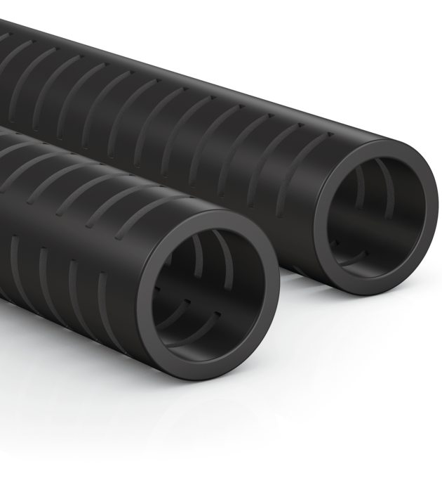Tubi fessurati in polietilene alta densità a superficie liscia di colore nero per la raccolta di percolati da acque di infiltrazione, per la captazione di biogas in discariche rifiuti e per il drenaggio di opere civili (locali interrati, muri di sostegno, lavori stradali, impianti sportivi, ecc.).