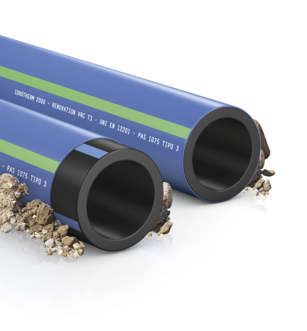 L’innovativa struttura di Renovation VRC T3 è costituita da un tubo realizzato integralmente in PE100 RC (polietilene ad elevatissima resistenza alla fessurazione), conforme alle norme UNI EN 12201-2, migliorato grazie all’azione di una guaina protettiva esterna. La tubazione è specifica per la distribuzione dell’acqua per il consumo umano, incluso il trasporto dell’acqua prima del trattamento.