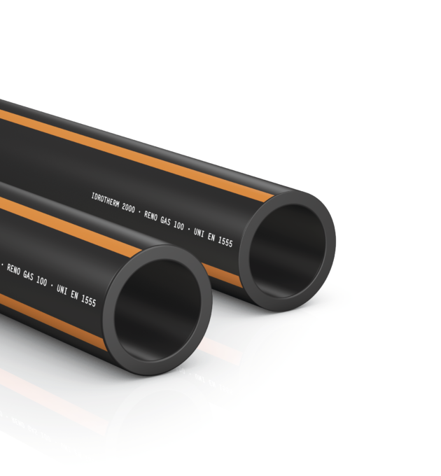 I tubi in polietilene PE100 Reno GAS 100 sono prodotti con polietilene PE100 (MRS 10 MPa) ed hanno caratteristiche conformi allo standard EN 1555, il cui campo di applicazione prevede la distribuzione dei combustibili gassosi.