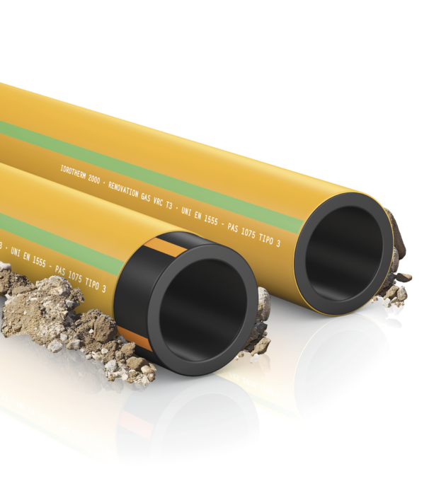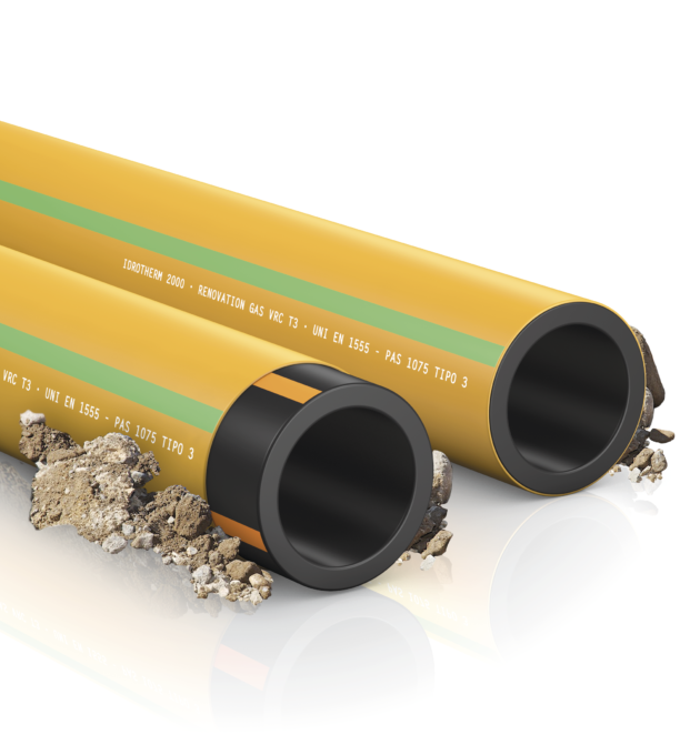 L’innovativa struttura di Renovation Gas VRC T3 è costituita da un tubo realizzato integralmente in PE100 RC (polietilene ad elevatissima resistenza alla fessurazione), conforme alle norme UNI UNI EN 1555-2, migliorato grazie all’azione di una guaina protettiva esterna.