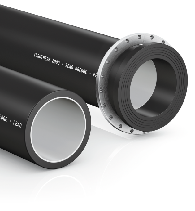 Tubi in polietilene alta densità di colore nero con uno strato interno di colore bianco in materiale poliolefinico appositamente progettato per un’elevata resistenza all’abrasione nelle operazioni di dragaggio in ambienti marini e di acque dolci.